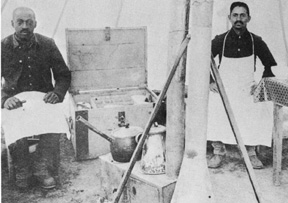 Kitchen scene, 25th Infantry during winter campaign, 1890-91, Fort Keough, Montana. U.S. Army Signal Corps photo (SC83763).