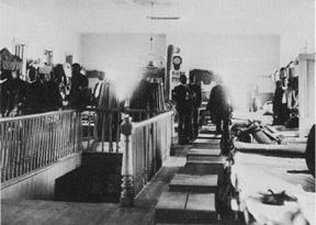 A squad room interior of the 24th Infantry at Huachuca around 1892.