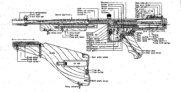 Cross-section of Thompson submachine gun, caliber