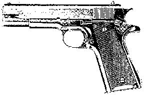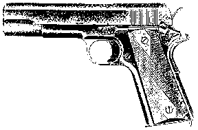 The M1911 pistol, showing parts.