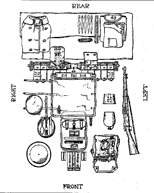 Equipment arranged for inspection. (From War Department Field Manual)