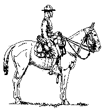 Trooper mounted, basic saddle pack, near side.--------------Trooper mounted, basic saddle pack, off side.