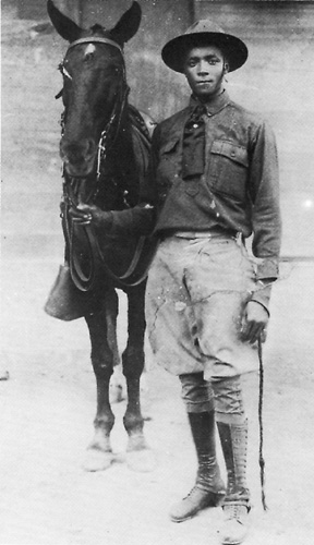 When I finished high school I had hoped to go to college and study music, but circumstances necessitated my getting a job to help support the family. Not prepared for anything in particular but well acquainted with the Army, I chose to enlist. The only hitch was no black could join the Army unless one was leaving; there was a strict quota system in operation. Luckily one of the buglers went permanently AWOL and I was allowed to join the Infantry at Fort Huachuca. I wanted to join the band but the older fellows advised against this if I hoped to move up in the ranks. They pointed out that the band was a one-way street; promotions and advancements did not exist. Since my instrument was a trumpet, they suggested I become a bugler. I would still be able to play my horn but would be a regular Infantryman. I took their advice. Being able to carry a forty-five instead of a rifle impressed me. Besides, buglers did not have to work details in the afternoon; they withdrew to the drill field and practiced.(32)