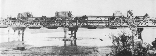 "U.S. Army Wagon Train Crossing the Rio Grande."