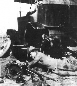"Hank Adair, 1st Lieut., 10th Cavalry, spent 10 hours working on his car for every hour he drove it. He owned one of the three cars then at Fort Huachuca." Photo courtesy Maj. Gen. John B. Brooks, USAF Ret., who as a 2d Lieut., 10th Cavalry, was a BOQ mate of Lieutenant Adair in 1914 at Huachuca.