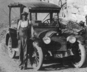 A soldier with pickup truck in the Chiricahua Mountains in 1919. From the Markel Collection.