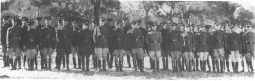 1925. Front row, left to right: Capts. Maas, Fuller, (Veterinarian) Domblazer,