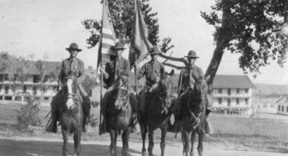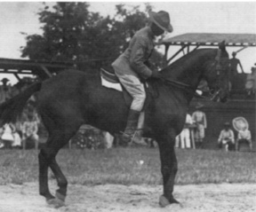 Huachuca, 1926. Holding the unit flag is George W. Parker,---------------through his paces in a 1920 equestrian competition.