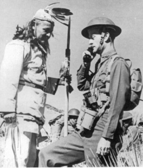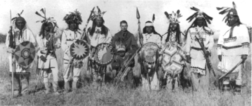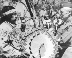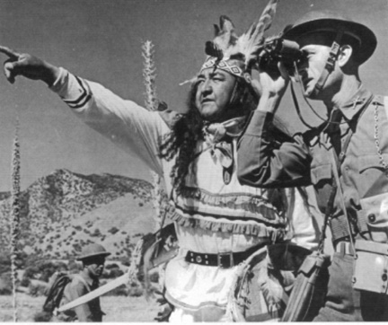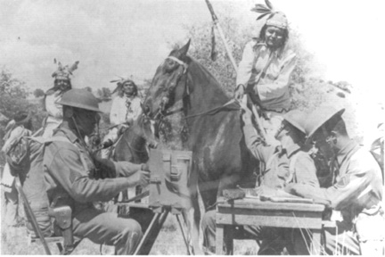 An Apache Scout in costume with infantrymen ------------------------Apache