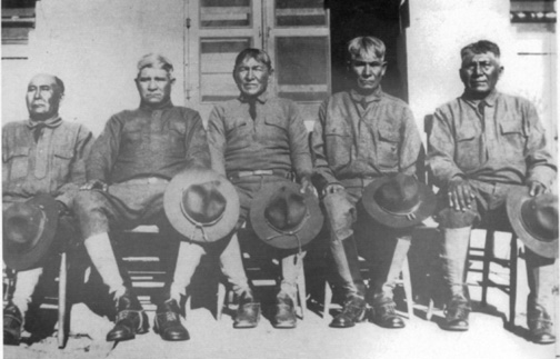 Indian scouts at Fort Huachuca in 1929. Left to right: