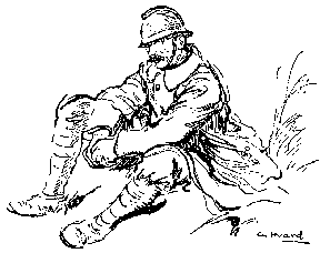 It was a dangerous road, and seeing some shelling on the road ahead of him, he had stopped to await its cessation. He was about to start up again when a shell fell a few feet away, many small fragments of which struck him, one large one striking him a glancing blow on the side. He ran back a few yards and was picked up by one of his comrades who brought him to the dressing-station at Verdun, where I was at the time. There his wounds were dressed; one of them proved to be serious.