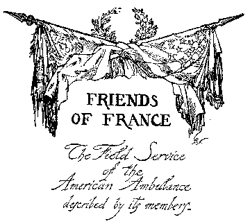 The little group of Americans told of in this book who, during the past two years, have dedicated valiant effort and, not unfrequently, risked their lives in the service of France, can best be thought of as only a symbol of millions of other Americans, men and women, who would gladly have welcomed an opportunity to do what these men have done --- or more. For, notwithstanding official silence and the injunctions of presidential prudence, the majority of Americans have come to appreciate the meaning, not only to France, but to all the world, of the issues that are today so desperately at stake, and their hearts and hopes are all with France in her gigantic struggle. They share with the world at large a feeling towards the French people of sympathy, of admiration, and, indeed, of reverence, such as exists towards the people of no other country; and millions of them, like these volunteers of the American Ambulance, have been tortured by a longing to have some share with the people of France in defending the ideals for which, as they feel, America has always stood, and for which France is now making such vast, such gallant, and such unflinching sacrifice.