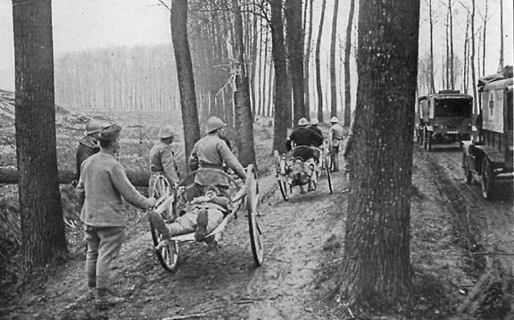 Stretchers slung between Two Wheels on their Way from