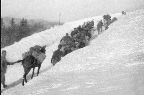 Supplies for the Soldiers being carried on Mules over