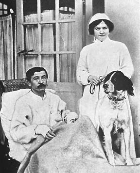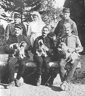 I must tell you about the wonderful dog that is at the American Ambulance; perhaps you have read about him in some of the papers. His master came from Algeria, and of course did not expect to take his dog with him, but when the ship left the wharf the dog jumped into the sea and swam after it, so they put off a boat and hauled him on board, and he has been with his master all through the war. He was in the trenches with him, and one day a German shell burst in the trench and killed all of his companions and buried this man in the mud and dirt as well as injuring him terribly. Strange to say the dog was not hurt at all, and the first thing the man remembered was the dog digging the mud off his face. As soon as he realized his master was alive he ran off for help, and when they were brought into the Ambulance together there were not many dry eyes about. After he was sure his master was being taken care of he consented to go and be fed, and now he is having the time of his life. He is the most important person in the place. He has a beautiful new collar and medal, lives in the diet kitchen, and is taken out to walk by the nurses, and best of all is allowed to see his master every day. I will send a photo of him to you. His master has lost one leg, the other is terribly crushed, and one hand also, but Doctor B---- thinks he can save them.