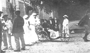 I had my paralyzed man out on the balcony to-day, it is the first time in six months that he has been out. One of the men here, who has lost the use of both hands, told me to-day that he had six brothers in the army; two have been killed, two wounded and two are still at the front. He was a coachman in a private family, has lost a thumb of one hand and on the other has only the thumb and one finger left. Fortunately his employer is a good man and will take care of him; but think of the poor man,---horses are his chief joy, and he will never be able to drive again.