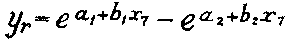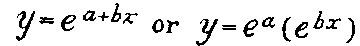 The value of each x chosen with the loge of its corresponding y was substituted in two equations, which were then solved for a and b. This gave a formula of the general form