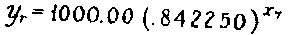 The 1000.00 is the ea; and the .842250, the eb. The curve then starts with 1000.00 patients of whom .842250 X 1000, or 842.25, are remaining in hospital at the end of one week (x7) ; and then of this remaining group (842.25) the same fraction .(.842250) or 842.25 X .842250=709.39 are remaining at the end of the two weeks, etc.