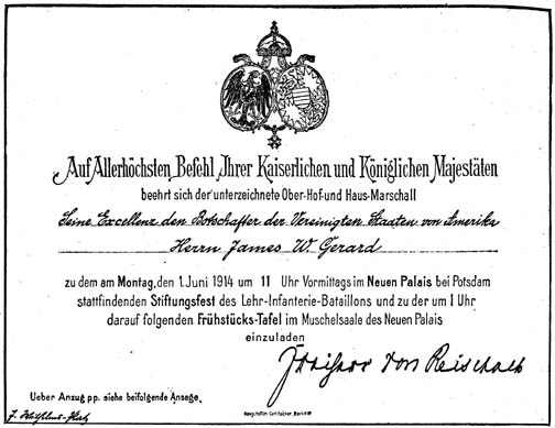 | INVITATION TO THE FESTIVAL IN THE NEW PALACE AT POTSDAM, JUNE FIRST, 1914 | |