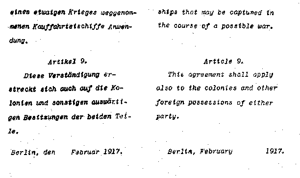 | A REPRODUCTION OF A PORTION OF THE REMODELED DRAFT OF THE TREATY OF 1799 BETWEEN THE UNITED STATES AND PRUSSIA, WHICH AMBASSADOR GERARD WAS ASKED TO SIGN WHEN LEAVING GERMANY AFTER DIPLOMATIC RELATIONS HAD BEEN SEVERED | |