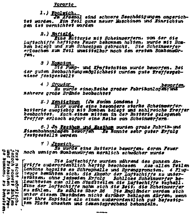 | A FAC-SlMILE, REPRODUCTION OF A MULTIGRAPH SET OF INSTRUCTIONS SENT OUT BY THE GERMAN PRESS BUREAU TO THE NEWSPAPERS FOR THE PURPOSE OF ENABLING THEM TO WRITE UP THE LATEST ZEPPELIN RAID ON LONDON. THE INSTRUCTIONS WARN THEM THAT THEIR ACCOUNTS MUST NOT READ LIKE A REPRINT, BUT MUST SEEM TO HAVE BEEN WRITTEN INDEPENDENTLY | |
