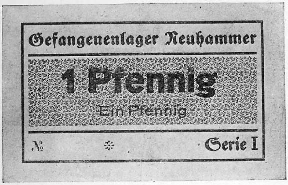 | FACSIMILE OF A PRISON CAMP MONEY CERTIFICATE ISSUED AT THE PRISON CAMP OF NEUHAMMER | |