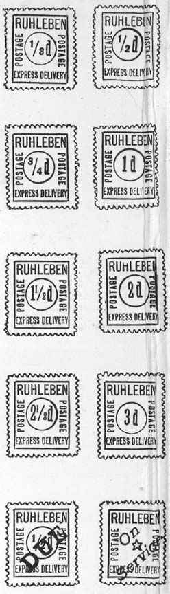 | POSTAGE STAMPS ISSUED AT RUHLEBEN PRISON CAMP, USED BY PRISONERS WRITING EACH OTHER IN THE CAMP | |