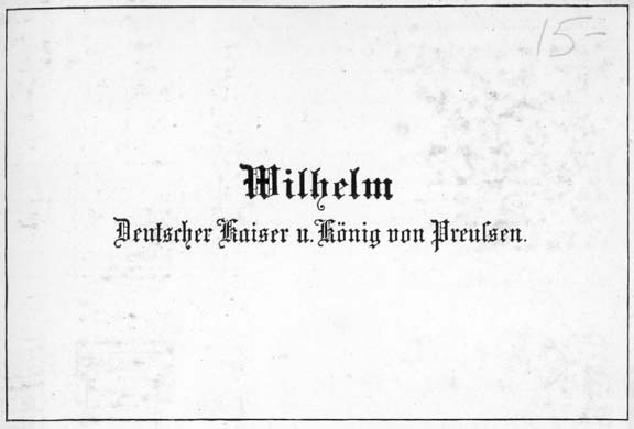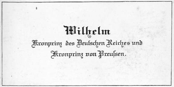 | FACSIMILE REPRODUCTION OF THE KAISER'S VISITING CARD | |