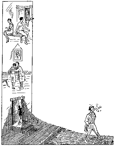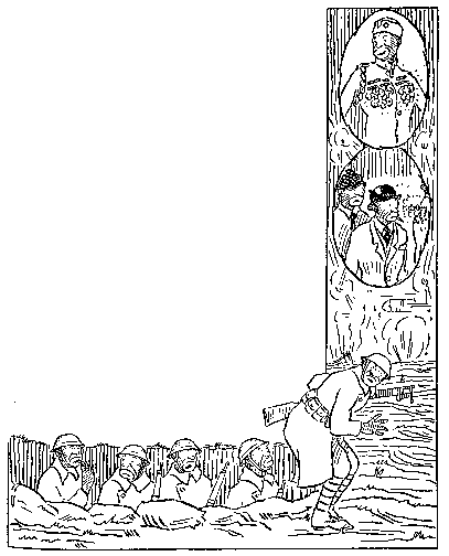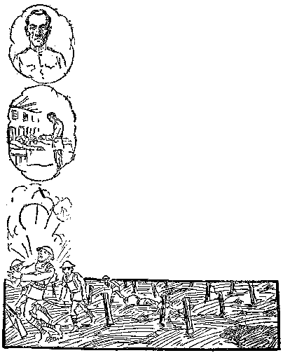 Some day you'll be in your "civies," Then you'll snap up to attention, So your thots will quickly wander, So you'll bring your hand up smartly, The Lieutenant's face will redden, |