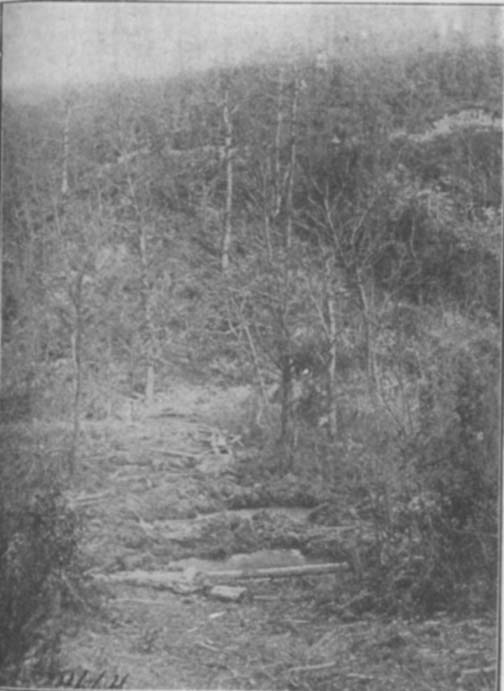 Through a light fog and mist myself and seven comrades started in the general direction of our support lines and crept down the hillside leading away from the beleagured battalion. We crossed a narrow valley and some of us waded and some of us stepped across a small stream of water known as Charlevaux Creek. Though we were badly in need of water none of us dared stop for even the smallest fraction of second, so went hurrying on to the shelter of the forest which lay the other side of the valley. In a few minutes we were at the edge of the forest, and with a silent prayer of thanks all huddled down for a brief rest. We were very weak from lack of food as we had gone five days in this second "pocket" or trap without any. Prior to that we had been in the first "pocket" or trap for a period of three days and as there was only one day intervening between the two traps we were virtually without stimulant for a period of a week.