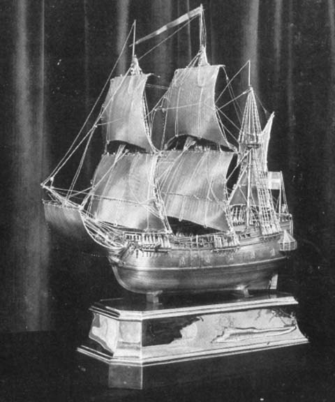 | A silver model of the Mayflower, the farewell gift of the Plymouth Council to Mr. Page |