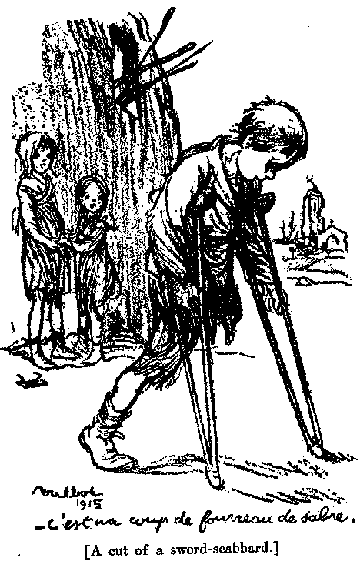 There was Mme. Gouge, beautiful and tragic, who came and cooked for us, in order to send her son to school in Amiens; and even more pathetic, her brother-in-law, formerly the owner of the prettiest house in the village, who often accompanied her and served our meals. He was the village barber as well, and on a Saturday was busy all day in his shed, heating water, shaving M. le Maire and other of his neighbours, and presenting each, on the completion of the task, with a view of shaven cheeks, or clipped hair, in the broken bit of mirror which hung beside the door.