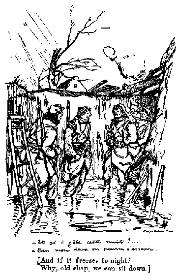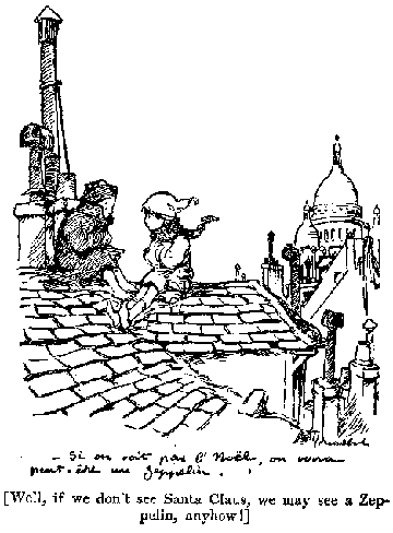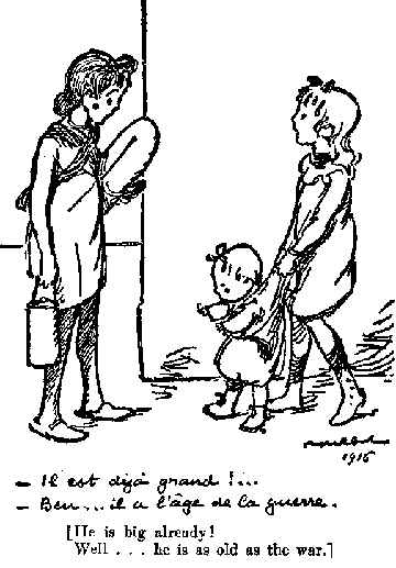 Among the Picard soldiers, there was Caporal Levet, the boy-friend of M. l'Aumônier, who made so light of his wounds. "It is nothing," he repeated again and again after sharp fits of coughing brought on by exposure to the biting wind as he accompanied us during our week of fetes. "This is nothing; I am resting now. Soon I shall go back. My Colonel, he told me only to-day that I must go down to the Midi to train Moroccans. That is to the bayonet. Me, I do not like the bayonet,-the charges. One goes with the blacks, you know. I have been wounded twice. But," a shrug of the shoulders, "my Colonel says that I am the youngest, -and I should go." Some one asked at one of the parties that he lead the Marseillaise. He protested for the first time. "We French," he said, "we are droll; we do not like to sing always of dying for the glory of la Patrie." But they die, nevertheless; and one is left only to wonder when his time will come, on what dark night, in the lull of the bombardment, when the blacks leap out of the trenches and lead the desperate charge.