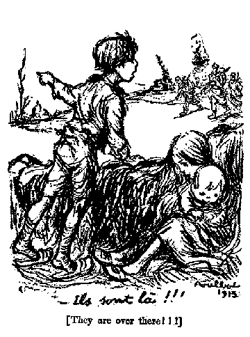 The civic life of the village centred about its public school and its teacher, and, of course, its curé and its church. The monotony of toil was relieved by market days and fête days and first communions and neighbourhood gatherings. Of these last I have seen a few pictures, groups of wrinkled grandparents and sturdy sons and grandchildren stiffly posed in Sunday best, yet happy in spite of it. Behind them pleached pear trees or grape vines make an appliqué against a patterned brick wall. But there are not many of the pictures even left, for you will understand, the Germans systematically searched them out and burned them in great piles. The one that I remember best, a poor mother had torn out of its frame the night of her flight. "I could not think well," she said. "The Boches had wrenched my Coralie away-so lovely a child that every one on the streets of Ham turned to look at her curls as she walked-but I did save this. See, there she is,-how pretty and good, and that is my eldest, a soldier. He is dead. And that, with the accordion, is my seventeen-year-old Raoul, like his sister, a prisonnier civil. What do the Boches do, think you," she continued, "with such? One hears nothing, nothing. Never a letter, never a message. Even when Mme. Lefèvre and Mme. Ponchon returned, they brought no word. The prisoners, evidently they are separated. One is told that they work and starve, -that is all."