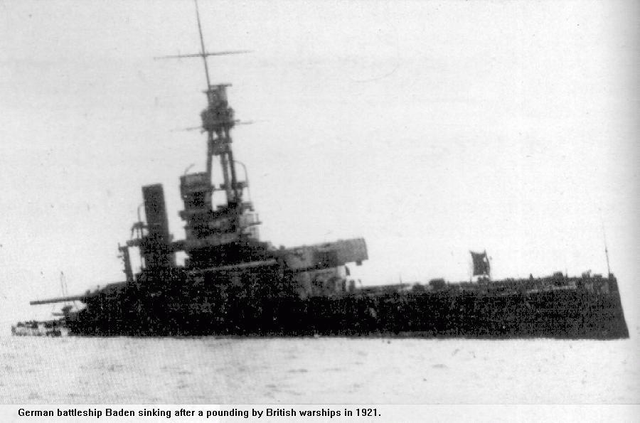 Baden sinking after being used as a gunnery target, 1921 |