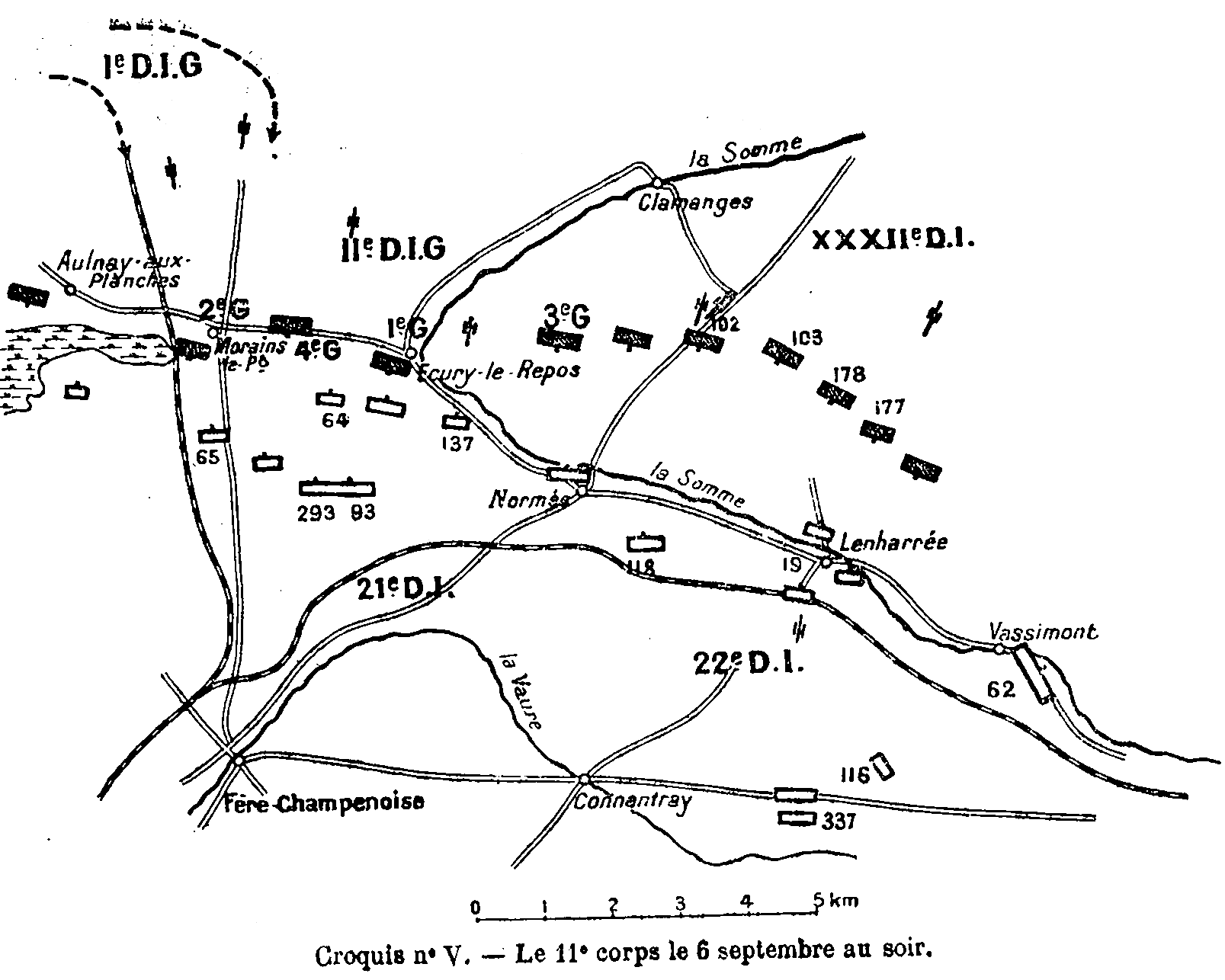 II -----Positions allemandes le 5 septembre au soir et marches des Français dans la journée