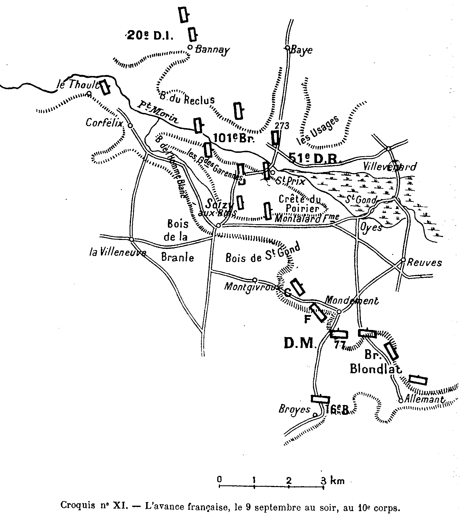 XI ---L'avance du 10e corps, le 9 septembre au soir