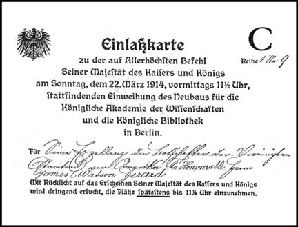 | INVITATION TO THE FESTIVAL IN THE NEW PALACE AT POTSDAM, JUNE FIRST, 1914 | |