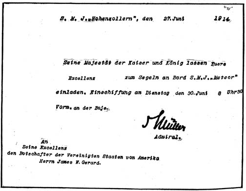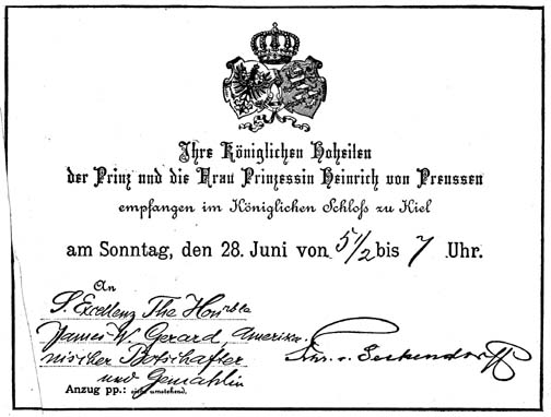 | INVITATION TO THE GARDEN PARTY AT KIEL OF PRINCE HENRY OF PRUSSIA, WHICH WAS GIVEN UP BECAUSE OF THE NEWS OF THE MURDERS AT SARAJEVO | |