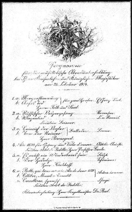 | PROGRAMME OF THE MUSIC AFTER DINNER AT THE ROYAL PALACE | |