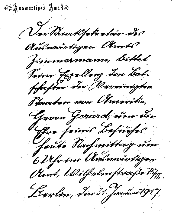 | SAFE CONDUCT FOR AMBASSADOR GERARD AND HIS FAMILY, UNDER THE SIGNATURE OF SECRETARY ZIMMERMANN, FEBRUARY 5, 1917 | |
