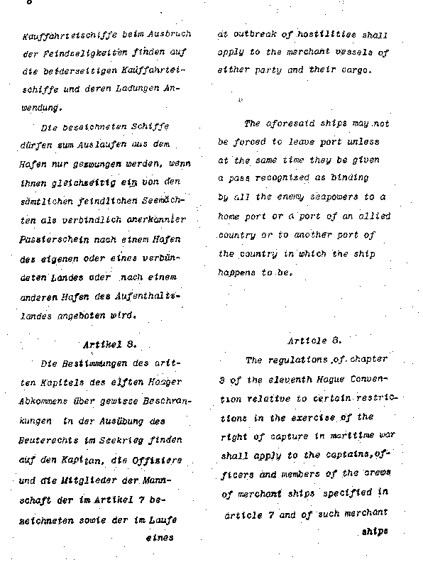 | A REPRODUCTION OF A PORTION OF THE REMODELED DRAFT OF THE TREATY OF 1799 BETWEEN THE UNITED STATES AND PRUSSIA, WHICH AMBASSADOR GERARD WAS ASKED TO SIGN WHEN LEAVING GERMANY AFTER DIPLOMATIC RELATIONS HAD BEEN SEVERED | |