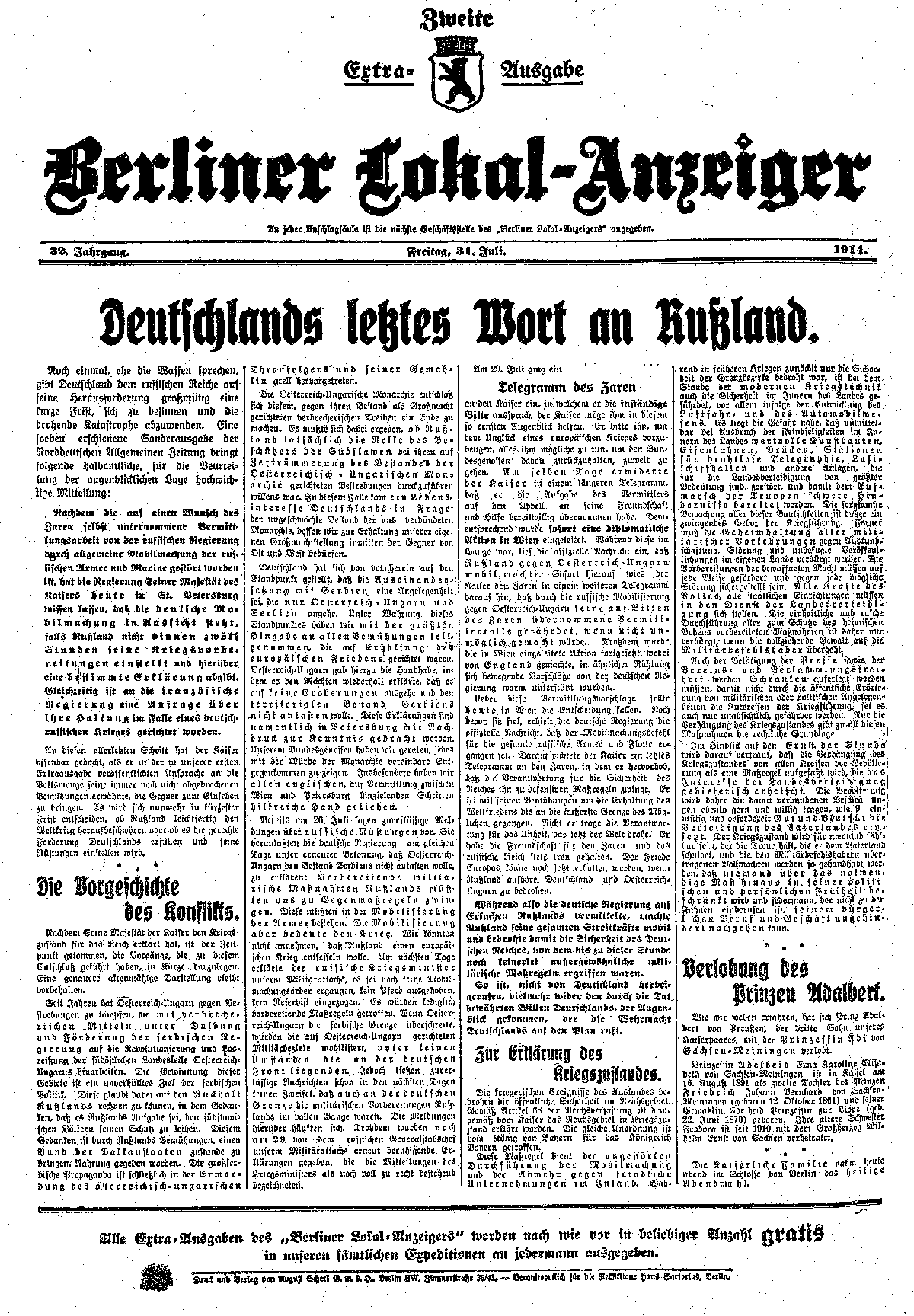 | A BERLIN EXTRA. GERMANY DISCLAIMS RESPONSIBILITY FOR THE WAR | |