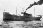 Fig. 5. WOOD SHIP. S. S. Aberdeen, 4000 DEAD-WEIGHT TON WOOD SHIP BUILT BY GRAYS HARBOR MOTORSHIP CORP., ABERDEEN, WASH. LAUNCHED IN 17 DAYS. 703 WOOD SHIPS WERE CONTRACTED FOR; 214 OF THESE CONTRACTS WERE CANCELLED WHEN THE ARMISTICE WAS SIGNED; 323 OF THE BALANCE WERE COMPLETED; 44 SOLD; 73 LOST, AND IN 1922 THE WOOD SHIPS BUILT FOR WAR PURPOSES WERE CONSIDERED OBSOLETE---256 OF THEM BEING SOLD FOR SCRAPPING. 265 CARRIED CARGOES OVERSEAS.