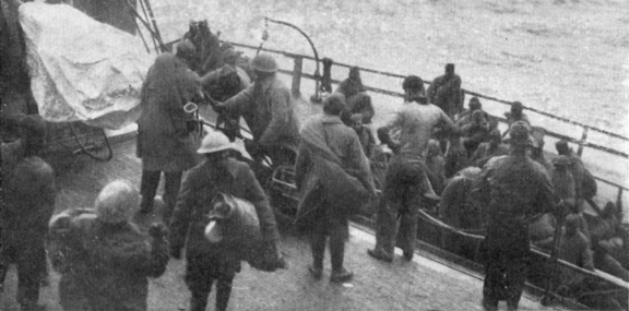 110. The "Stockholm" with her cargo of "Hell Fighters" under command of Colonel Hayward on deck, just before docking In New York harbor.