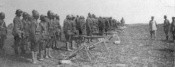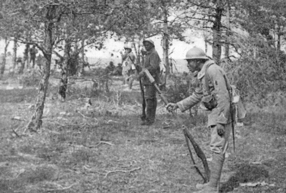 47. French Colonial Troops (Senegalese) being drilled in use of rifle grenades on the Marme.