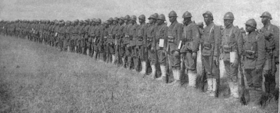 40. "Six Months Later." American Negro troops marching along a Frerich road toward the front. SIx months before this picture was taken they were undrillod civilians.