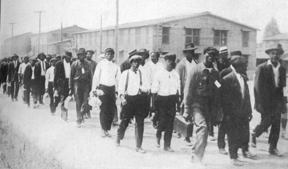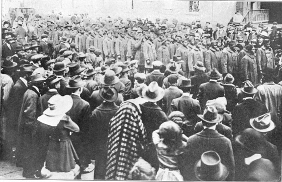 39. "The Raw Material of Soldiers." Negroes drawn in the selective draft arriving at the cantonment. Compare this photograph with the following one.