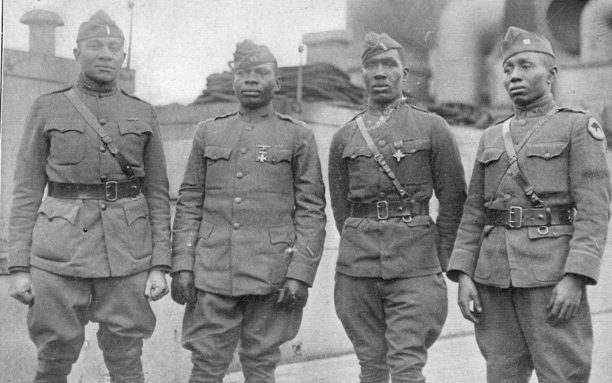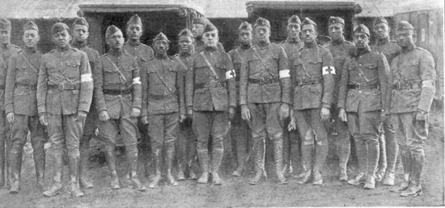 93. Sergeants of Headquarters Company, 372nd Infantry "somewhere in France" just before the big drive.Group in Chapter XIII (thumbnails)