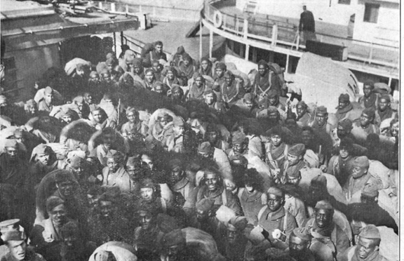 113. The troopship "La France" was still in her war paint as she brought the 370th (Old 8th Illinois National Guard) safely home from the battlefields of France.